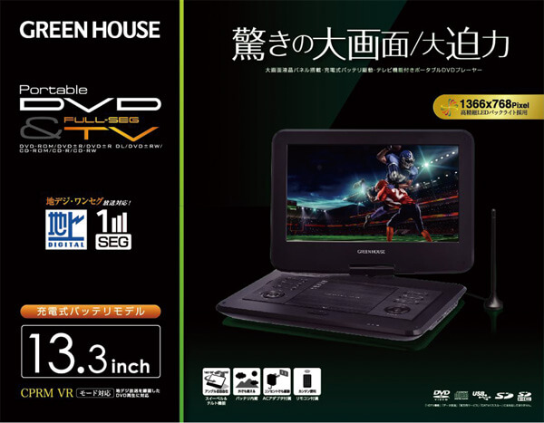 13.3型ワイド液晶ポータブルDVDプレーヤー | GH-PDV13AT-BK