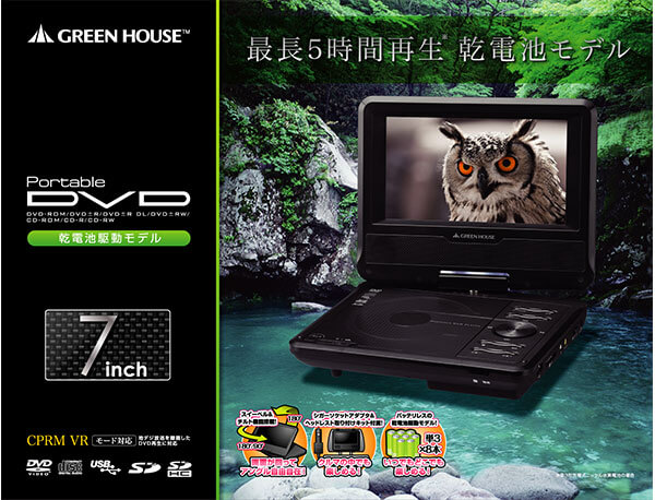 乾電池対応 7型ワイド ポータブルDVDプレーヤー