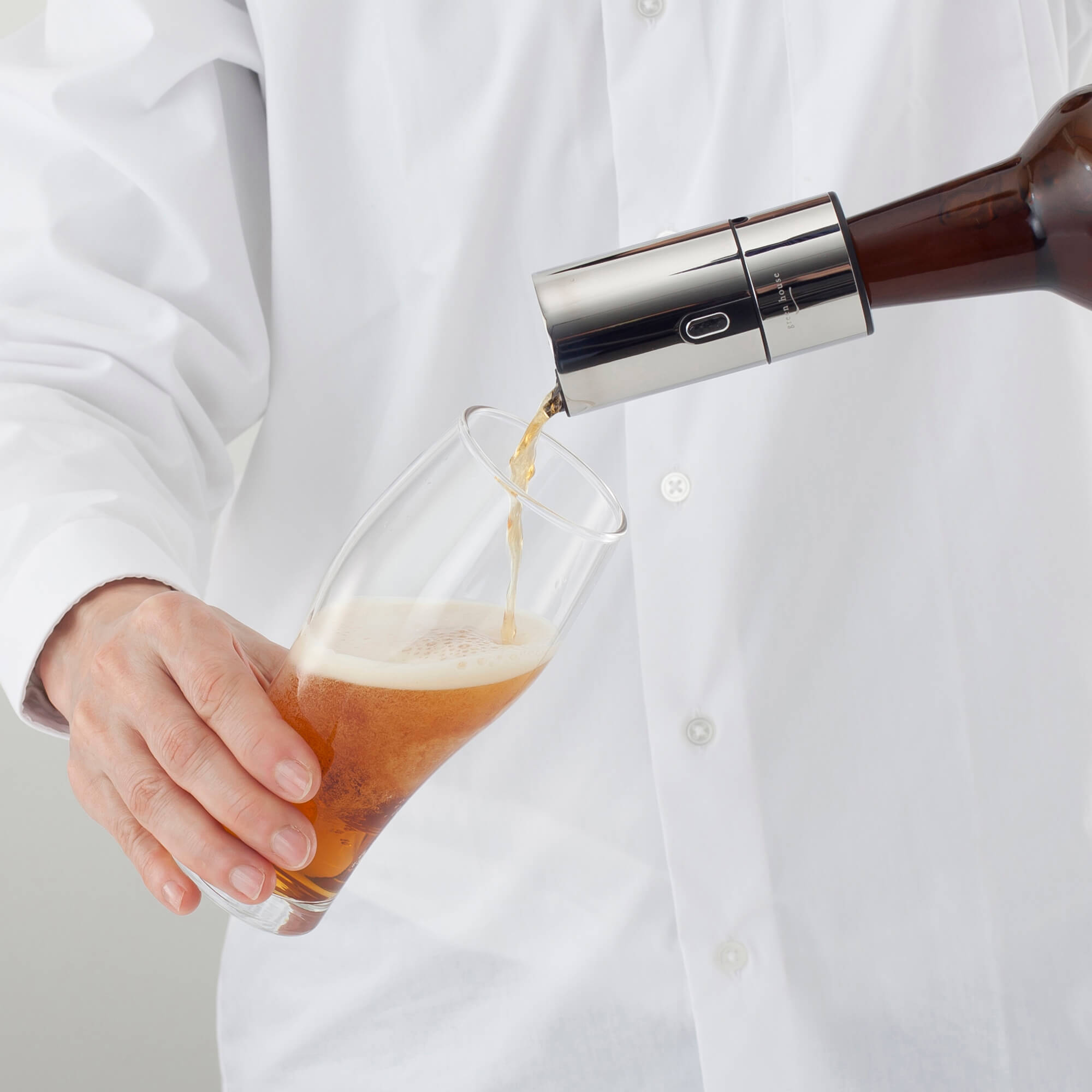 - 瓶口に付けるだけ、ボタンを押しながら注ぐとクリーミーできめ細かな泡