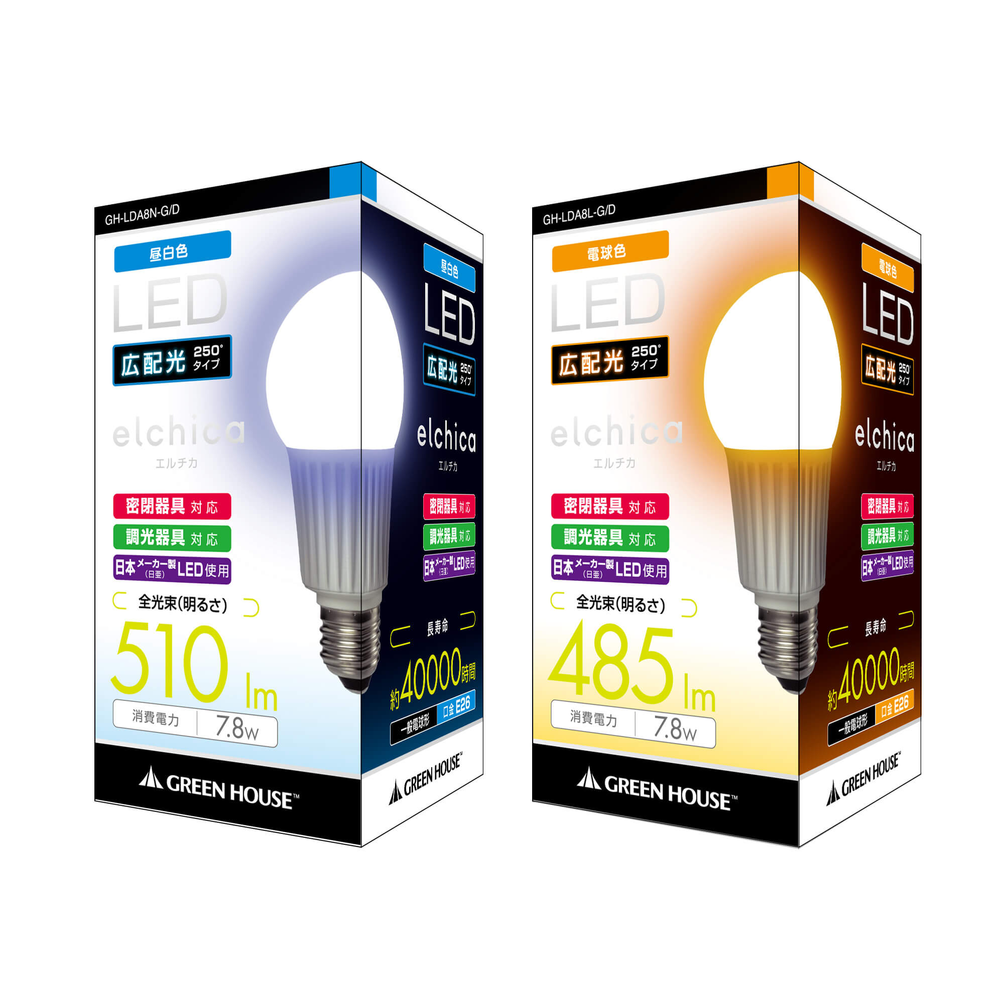 | 型番(電球色) | GH-LDA8N-G/D(昼白色) | GH-LDA8L-G/D(電球色) |