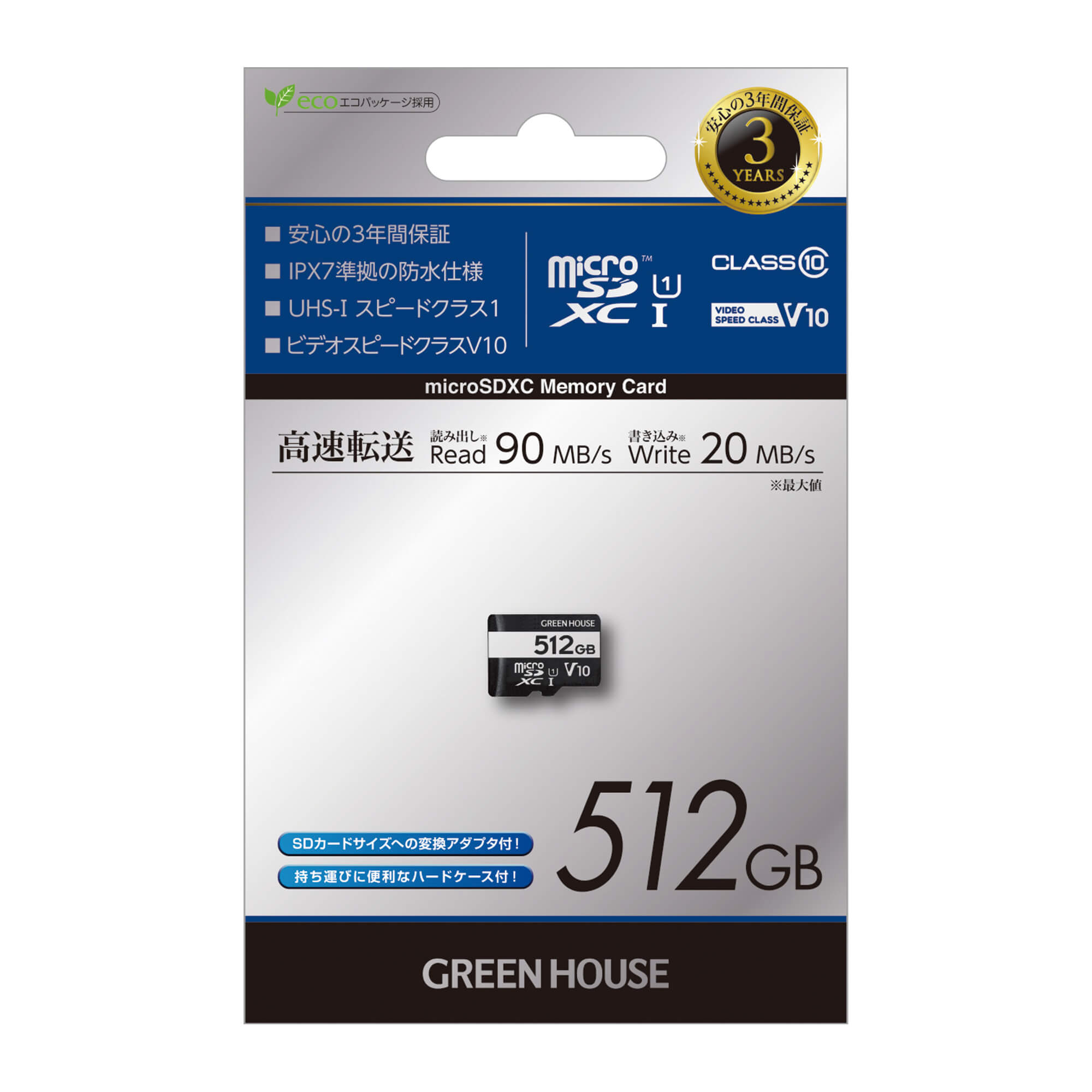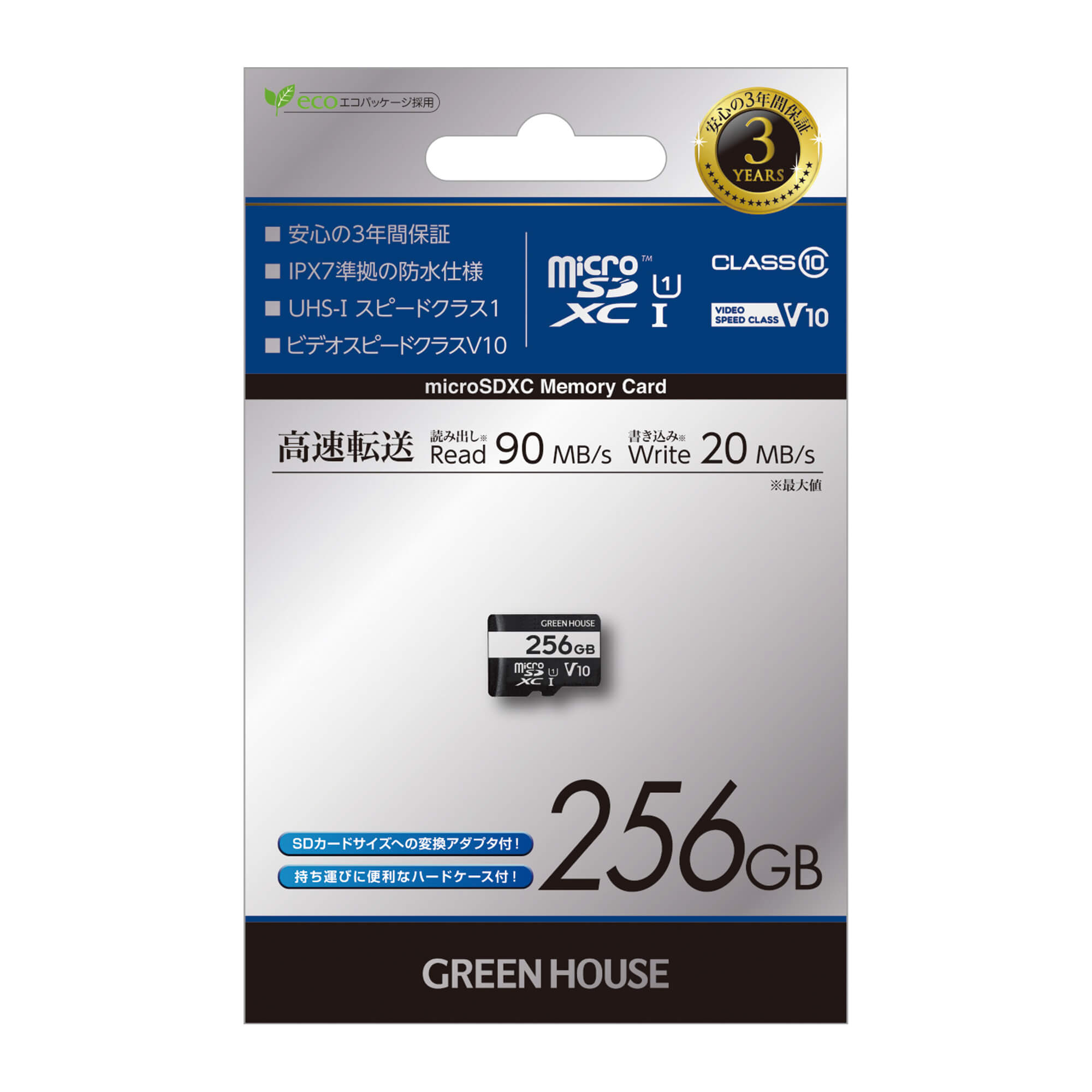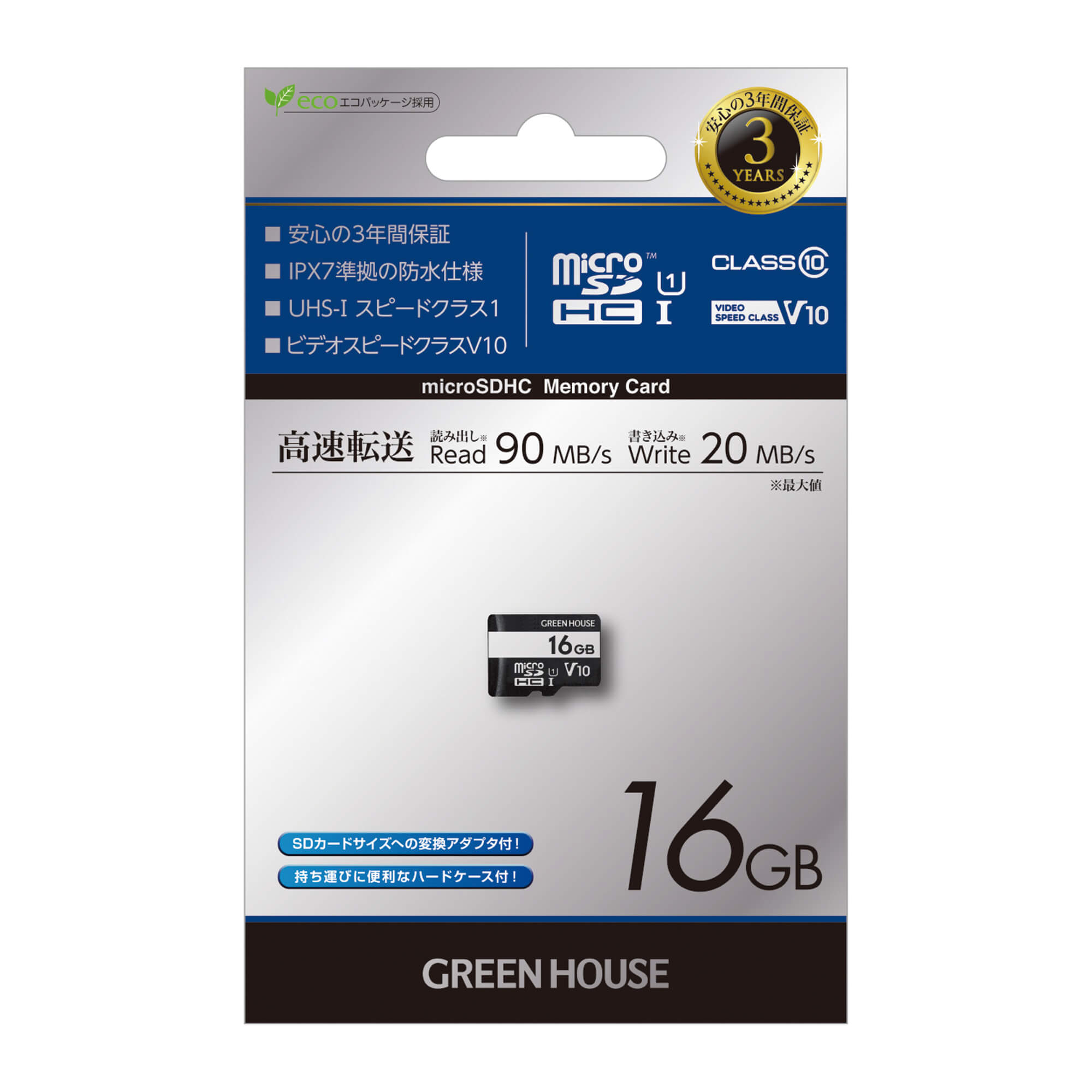 | 転送速度 | 「読み込み時」最大90MB/s、「書き込み時」 最大20MB/s (UHS-I モード時) |