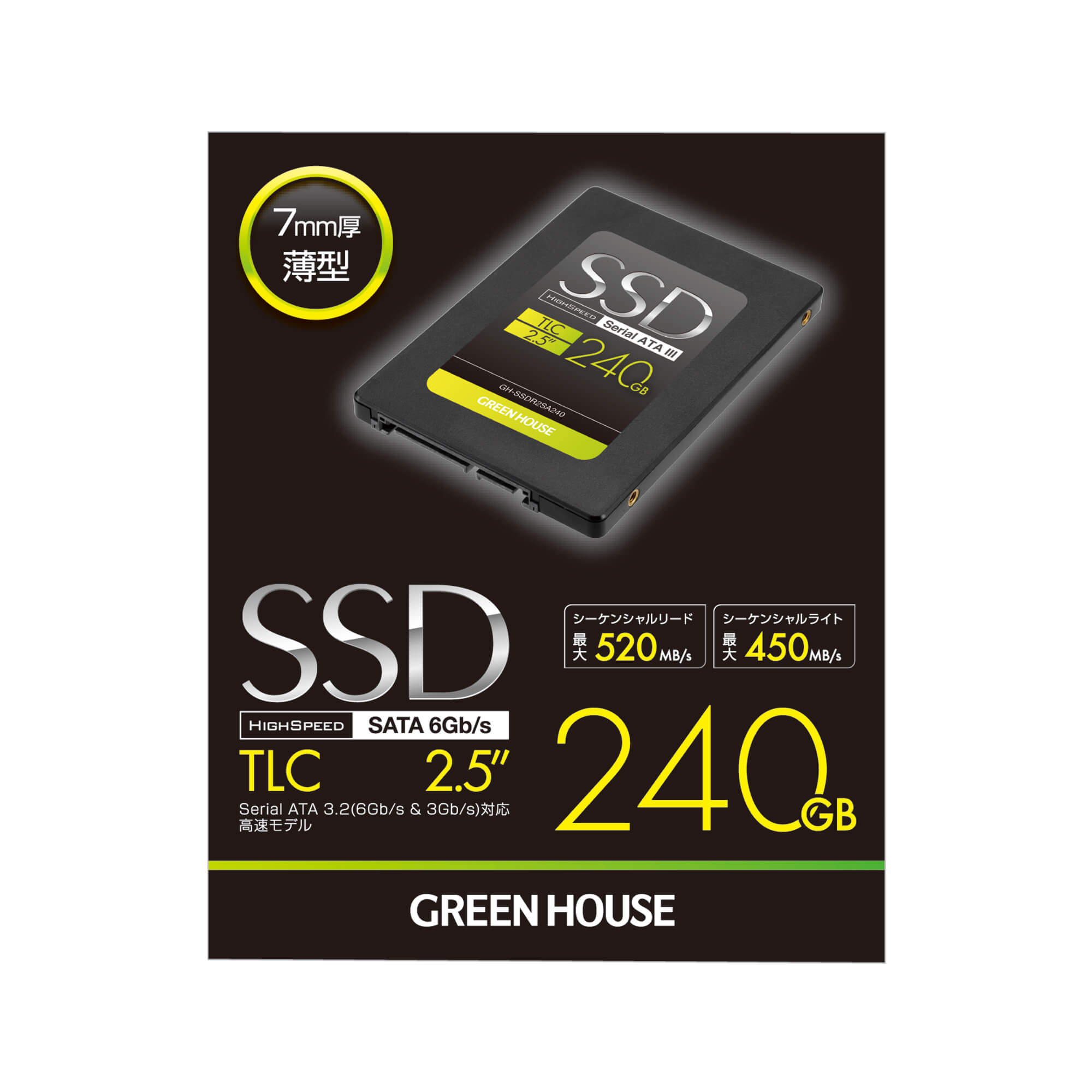 240GB 読込520MB/s(最大)、書込450MB/s(最大)