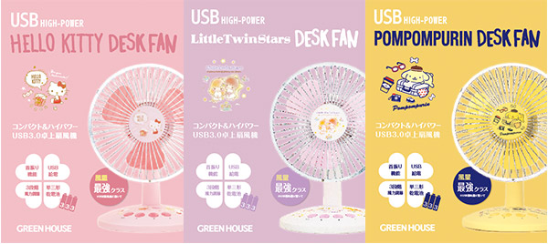 ハローキティ・リトルツインスターズ・ポムポムプリン サンリオキャラクターのUSB扇風機