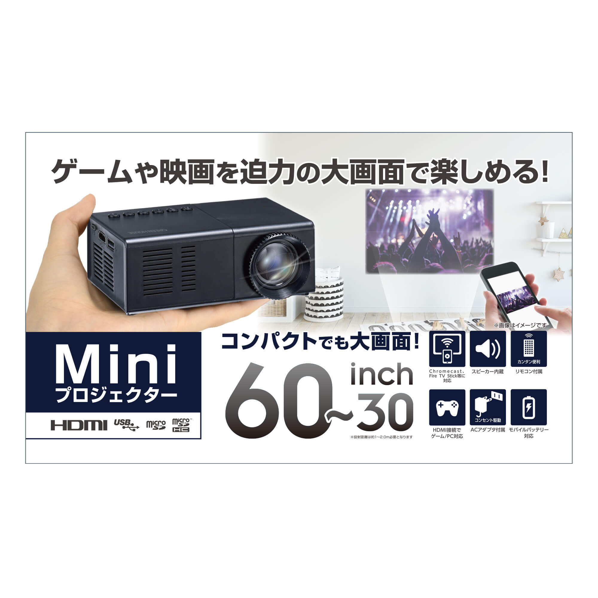 - 投影サイズ最大60インチ