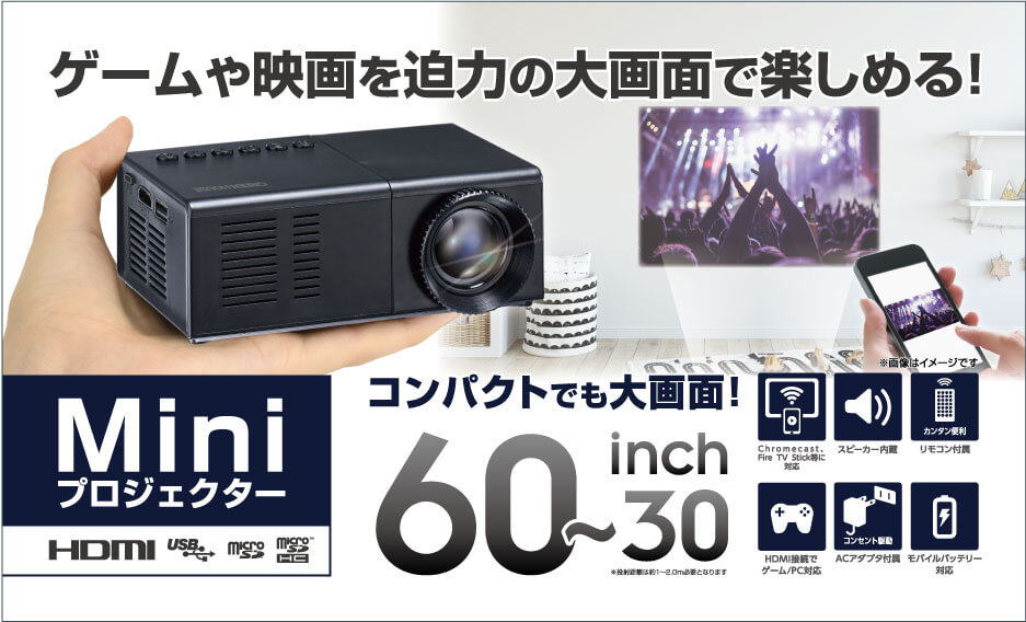 - 投影サイズ最大60インチ